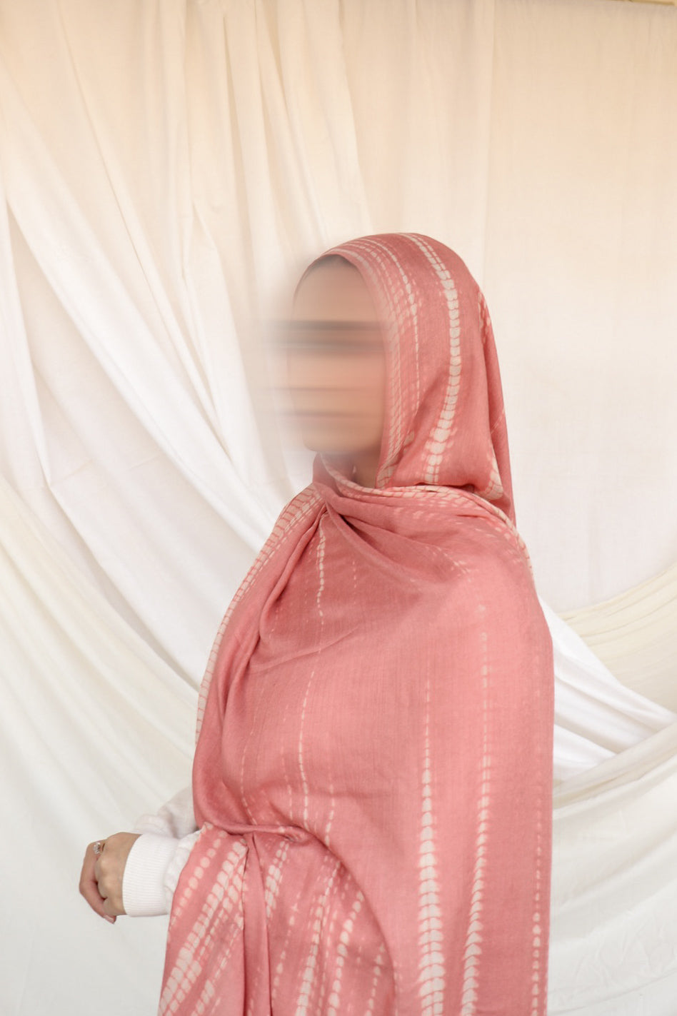 Crafted from our signature 100% Modal Lawn fabric, each hijab is dyed in small batches to create this one-of-a-kind shibori-inspired design. despite the intricate pattern, it remains lightweight, breathable, and perfect for adding texture to your look without weighing you down.